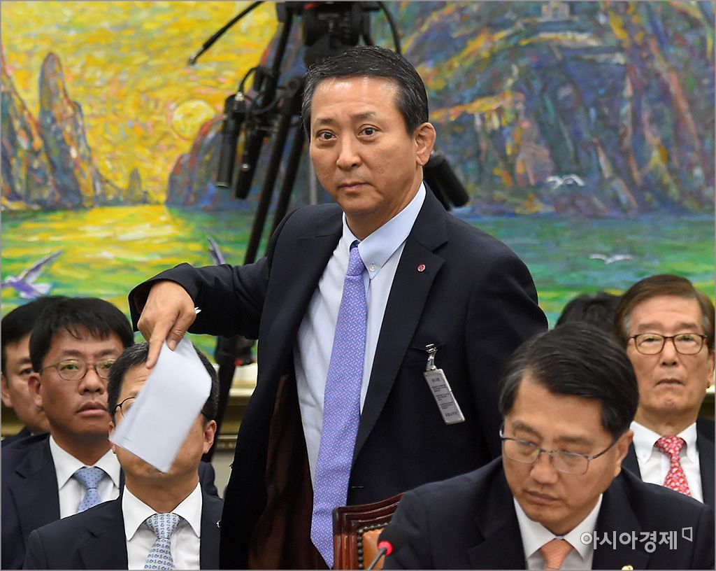 [아시아경제 윤동주 기자] 다단계 영업방식으로 언론의 질타를 받고 있는 LG유플러스 권영수 부회장이 18일 국회에서 열린 정무위원회의 금융위원회 등에 대한 종합국정감사에 출석, 의원들 질의에 답변하기 위해 단상으로 나가고 있다.윤동주 기자 doso7@asiae.co.kr<ⓒ세계를 보는 창 경제를 보는 눈, 아시아경제(www.asiae.co.kr) 무단전재 배포금지>