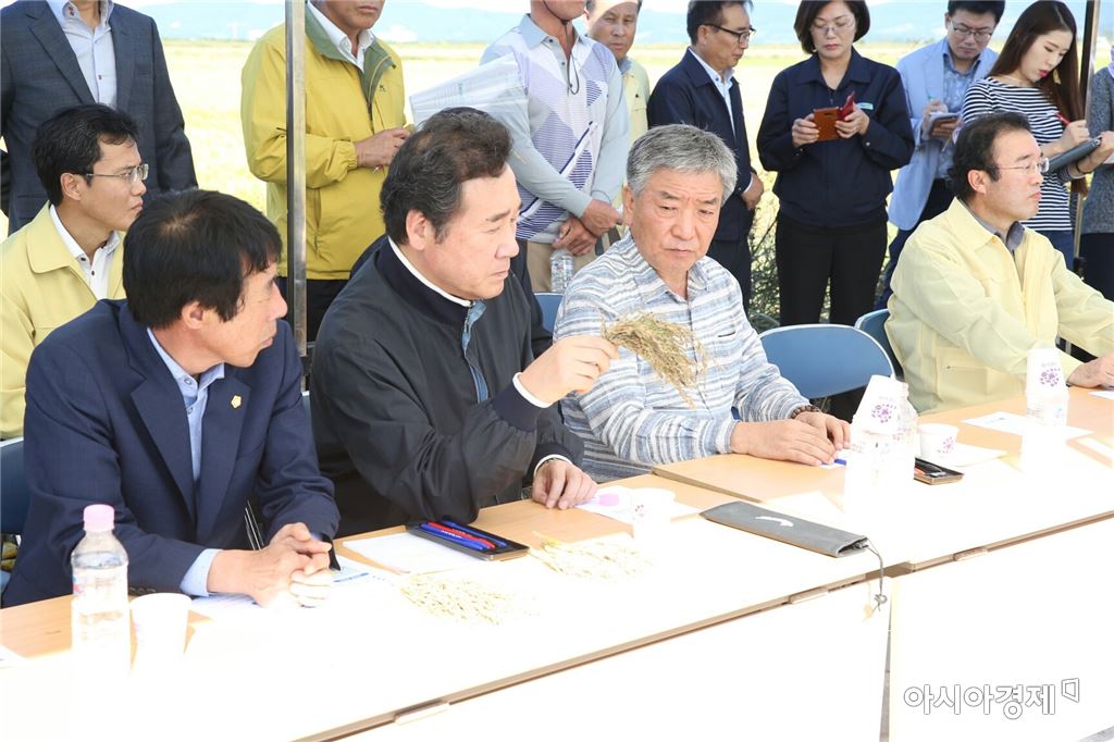 박병종 전남 고흥군수가 지역 현안사업 해결을 위해 국회를 방문한 자리에서 수발아 피해 벼 전량매입과 농작물 재해보험 피해율 적정 산정 등을 건의했다. 사진은 지난 17일 이낙연 전남도지사가 피해지역 현장 방문한 모습