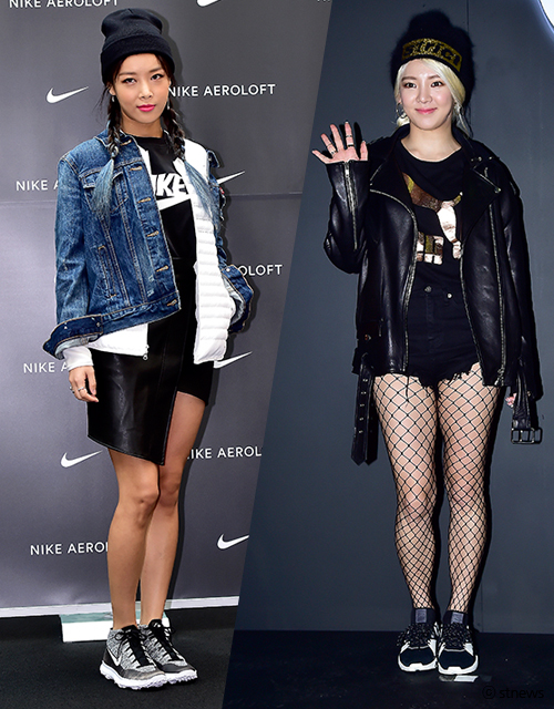 감각적인 걸크러시 룩 스타일 원한다면 원더걸스 유빈 스타일에 주목하자. 그녀는 레이어드 룩으로 특유의 개성을 뽐냈다. 데님 재킷에 이너 웨어로 블랙 컬러 면 티셔츠, 골프웨어를 착용해 자신만의 스타일로 소화했다. 여기에 비대칭 레더 스커트를 매치한 걸크러시 룩을 완성했다. 블랙 컬러 비니를 착용해 스웨그를 더했다.◆ 섹시미 넘치는 걸크러시 룩효연