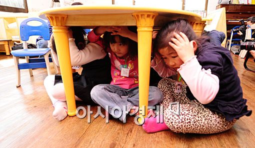 [아시아경제 한동우 인턴기자] 19일 오후 2시 지진 대피훈련이 시작됐다.이번 훈련은 서울에서 지진 발생시 ‘복합재난’에 대비하기 위한 역대 최대 규모로 이뤄졌다.이날 훈련장소인 서울 상일동 지진방재훈련장에 철거예정 아파트 68개 동을 실제 지진 피해 현장처럼 조성한 뒤, 현장에서 부상자를 신속하게 구출하는 등의 훈련이 진행됐다.또한 이날 훈련은 어린이집과 유치원, 초·중·고교, 정부(입법부·사법부 포함), 자치단체, 공공기관 등은 의무적으로 참여하며 시·군·구별로 1곳 이상에서 시범훈련을 진행했다.이번 훈련에는 군, 경찰 그리고 소방관 등 3400여 명이 참여했다.한편 KTX, 지하철, 항공기, 선박 등은 정상 운행 중이다.한동우 인턴기자 corydong@asiae.co.kr<ⓒ세계를 보는 창 경제를 보는 눈, 아시아경제(www.asiae.co.kr) 무단전재 배포금지>