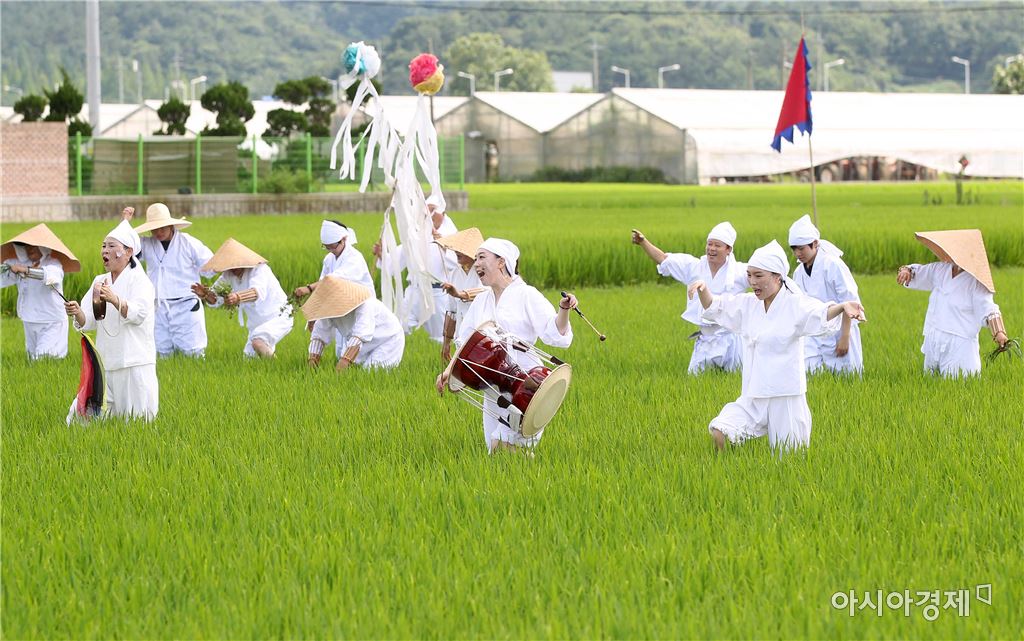 [아시아경제 박선강 기자]광주광역시 북구(청장 송광운)는 오는 22일 오후 2시 용전마을 입구에서 지역주민, 학생 등 500여명이 참여한 가운데 ‘용전들노래 가을걷이 한마당’을 개최한다고 20일 밝혔다.용전들노래는 용전동 일대에서 불려지던 흥겨운 들노래(노동요)로, 1960년대 말 까지 구전돼 오다 그 맥이 끊겼으나, 2년여의 고증을 통해 1999년에 재현된 광주 북구의 대표 ‘농요’이다.이번 공연은 (사)용전들노래보존회 회원(회장 표범식) 및 지역 농민들이 참여한 가운데 ▲모판밟기 ▲모찌기 ▲모심기 ▲논매기 ▲장원질 ▲벼베기 등의 모습을 흥겨운 농요와 함께 재현한다.전체적으로 8곡의 농요가 소개되며, 다른 지방의 농요와는 달리 독특한 장단 한배 기법을 구사해 매우 흥겹고 경쾌한 장단을 선보이게 된다.특히, 올해 용전들노래 연구학교로 지정된 관내 지산중학교와 광주북초등학교 학생들이 이번 재현행사에 참여해 전통문화 계승·발전의 의미를 더할 예정이다.북구 관계자는 “이번 공연은 잊혀져가는 우리지역 소중한 문화유산을 복원하고 계승·발전시키기 위해 마련됐다”며 “앞으로도 용전들노래가 광주를 대표하는 민속문화로 자리매김 할 수 있도록 최선을 다하겠다”고 말했다.한편 재현 18년째를 맞이하는 용전들노래는 북구와 (사)용전들노래보존회의 지속적인 노력으로 지난 2014년 7월 광주광역시 무형문화재 제22호로 지정·고시 됐다.박선강 기자 skpark82@asiae.co.kr<ⓒ세계를 보는 창 경제를 보는 눈, 아시아경제(www.asiae.co.kr) 무단전재 배포금지>