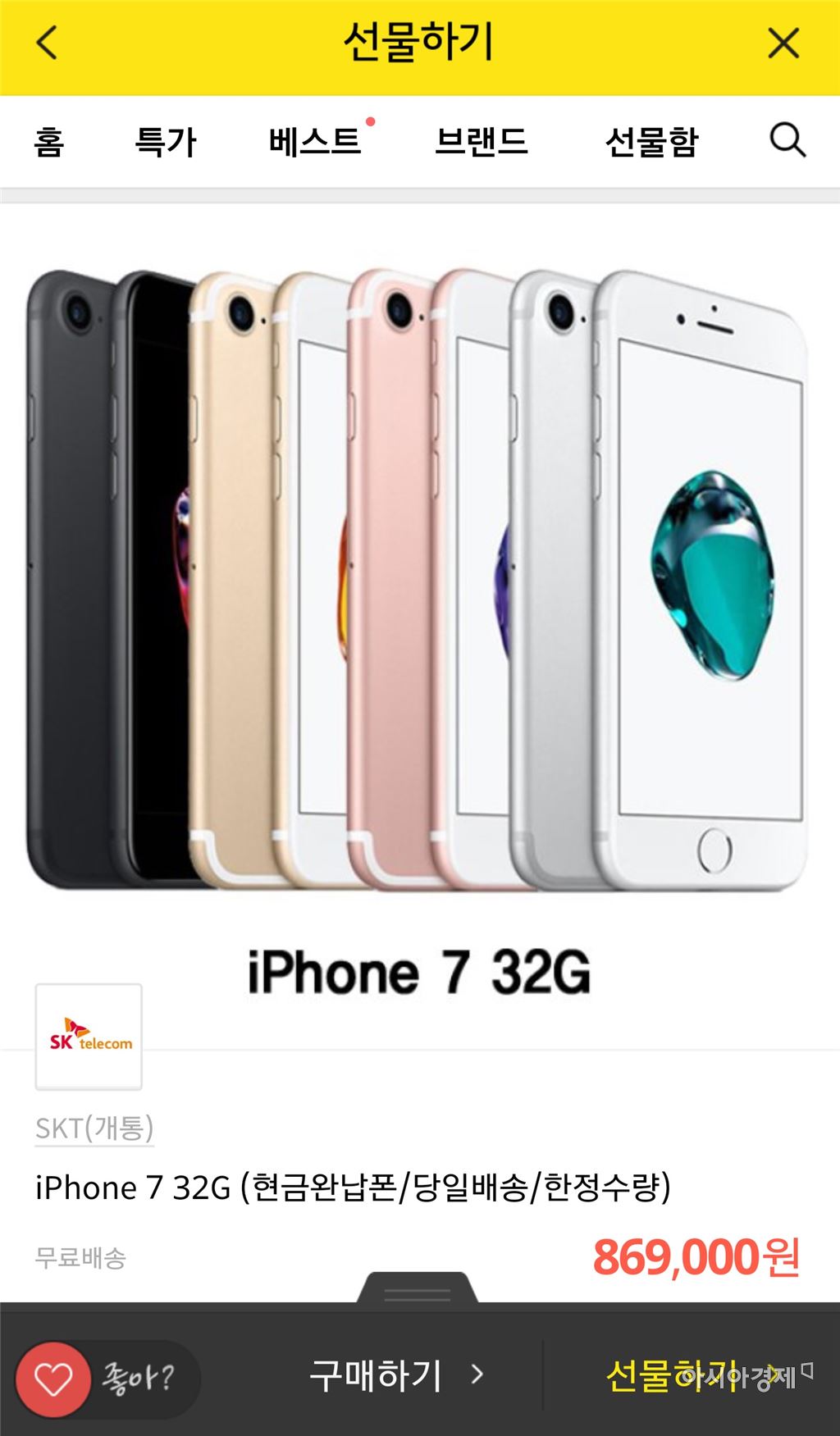 카카오 선물하기에서 판매를 시작한 '아이폰7'