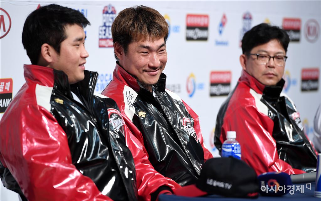 [아시아경제 김현민 기자]프로야구 2016 KBO 포스트시즌 플레이오프 미디어데이가 20일 마산종합운동장 올림픽기념관에서 열렸다. LG 이동현이 미소 짓고 있다.김현민 기자 kimhyun81@asiae.co.kr<ⓒ세계를 보는 창 경제를 보는 눈, 아시아경제(www.asiae.co.kr) 무단전재 배포금지>