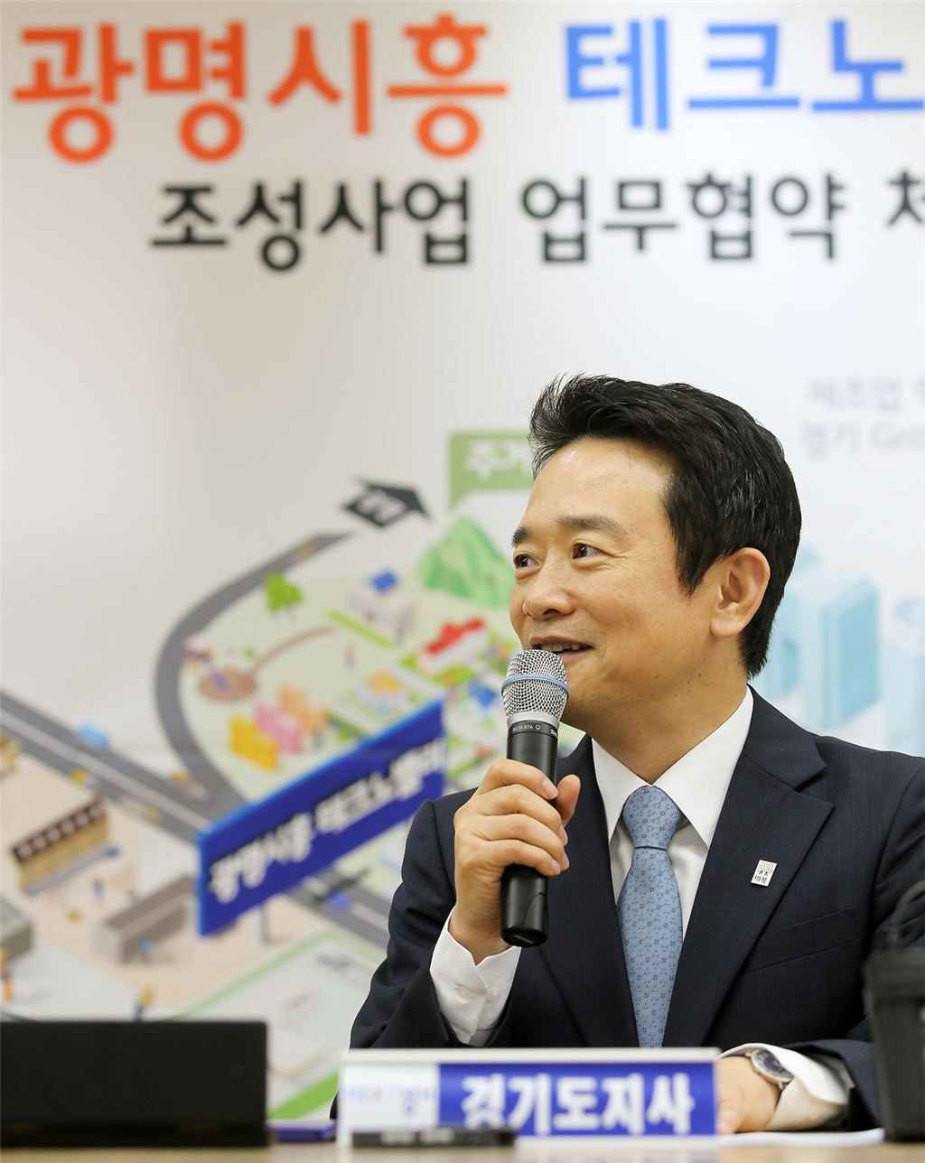 남경필 경기지사가 광명시흥테크노밸리 조성사업 협약식에 참석해 인사말을 하고 있다.