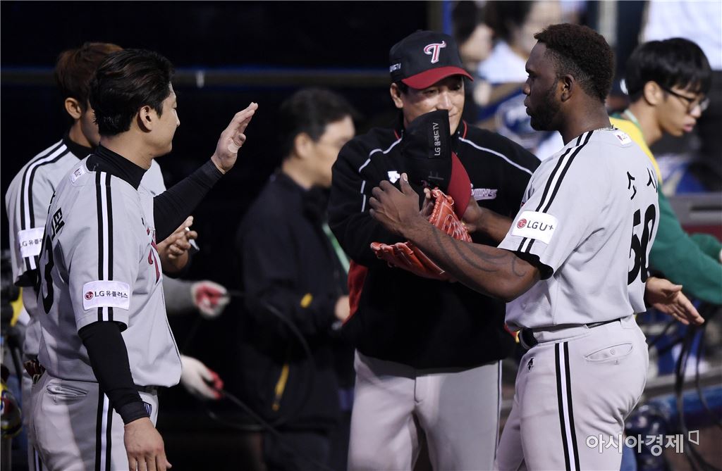 [아시아경제 김현민 기자]프로야구 LG와 NC의 2016 KBO 포스트시즌 플레이오프 1차전이 21일 마산구장에서 열렸다. LG 선발투수 소사가 7회말 1사 1,2루의 위기에서 정찬헌과 교체돼 마운드를 내려가고 있다.김현민 기자 kimhyun81@asiae.co.kr<ⓒ세계를 보는 창 경제를 보는 눈, 아시아경제(www.asiae.co.kr) 무단전재 배포금지>