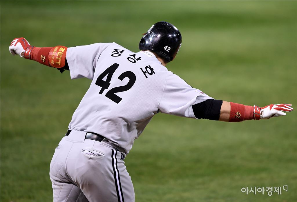[아시아경제 김현민 기자]프로야구 LG와 NC의 2016 KBO 포스트시즌 플레이오프 1차전이 21일 마산구장에서 열렸다. 8회초 LG 선두타자 정상호가 NC 선발 해커를 상대로 추가 좌월 솔로 홈런을 치고 환호하고 있다.김현민 기자 kimhyun81@asiae.co.kr<ⓒ세계를 보는 창 경제를 보는 눈, 아시아경제(www.asiae.co.kr) 무단전재 배포금지>