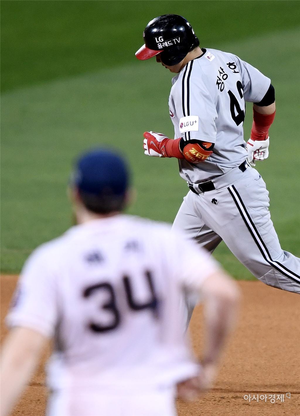 [아시아경제 김현민 기자]프로야구 LG와 NC의 2016 KBO 포스트시즌 플레이오프 1차전이 21일 마산구장에서 열렸다. 8회초 LG 선두타자 정상호가 NC 선발 해커를 상대로 추가 좌월 솔로 홈런을 치고 베이스를 돌고 있다.김현민 기자 kimhyun81@asiae.co.kr<ⓒ세계를 보는 창 경제를 보는 눈, 아시아경제(www.asiae.co.kr) 무단전재 배포금지>