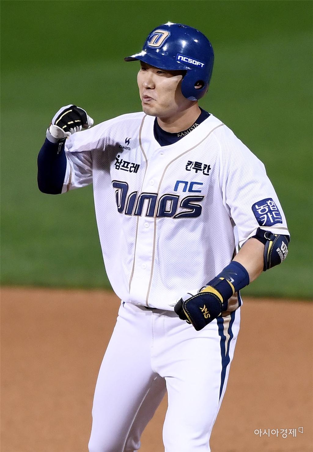 [아시아경제 김현민 기자]프로야구 LG와 NC의 2016 KBO 포스트시즌 플레이오프 1차전이 21일 마산구장에서 열렸다. 9회말 무사 1,3루에서 NC 지석훈이 1타점 적시타를 치고 환호하고 있다.김현민 기자 kimhyun81@asiae.co.kr<ⓒ세계를 보는 창 경제를 보는 눈, 아시아경제(www.asiae.co.kr) 무단전재 배포금지>