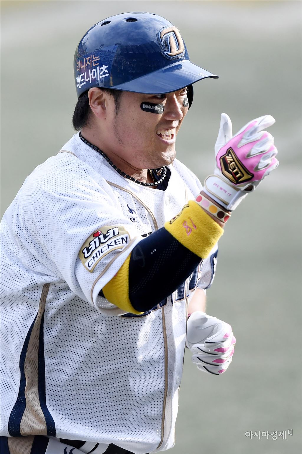 [창원=아시아경제 김현민 기자]프로야구 LG와 NC의 2016 KBO 포스트시즌 플레이오프 2차전이 22일 마산구장에서 열렸다. 7회말 2사에서 NC 박석민이 LG 선발 허프를 상대로 선제 투런 홈런을 치고 환호하고 있다.김현민 기자 kimhyun81@asiae.co.kr<ⓒ세계를 보는 창 경제를 보는 눈, 아시아경제(www.asiae.co.kr) 무단전재 배포금지>