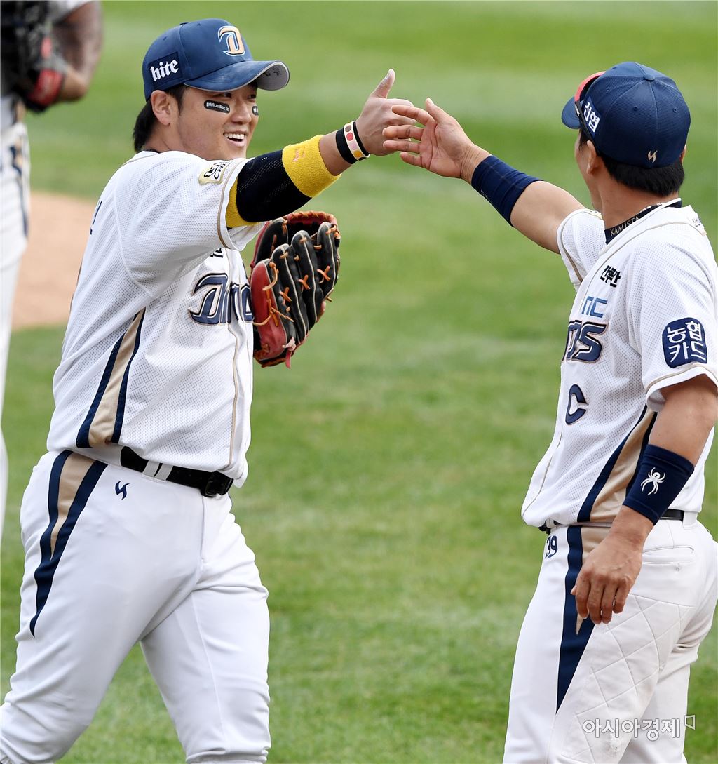 [창원=아시아경제 김현민 기자]프로야구 LG와 NC의 2016 KBO 포스트시즌 플레이오프 2차전이 22일 마산구장에서 열렸다. NC 박석민이 2-0 승리를 확정한 뒤 동료들과 기뻐하고 있다.김현민 기자 kimhyun81@asiae.co.kr<ⓒ세계를 보는 창 경제를 보는 눈, 아시아경제(www.asiae.co.kr) 무단전재 배포금지>