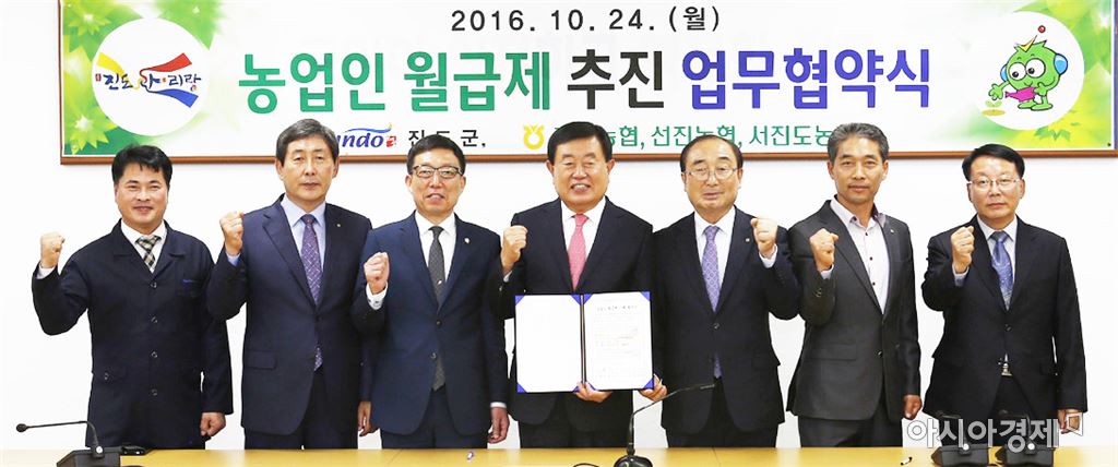 진도군은 24일 군청 상황실에서 이동진 진도군수와 농협 관계자 등이 참석한 가운데 농업인 월급제 추진 업무 협약을 체결했다.