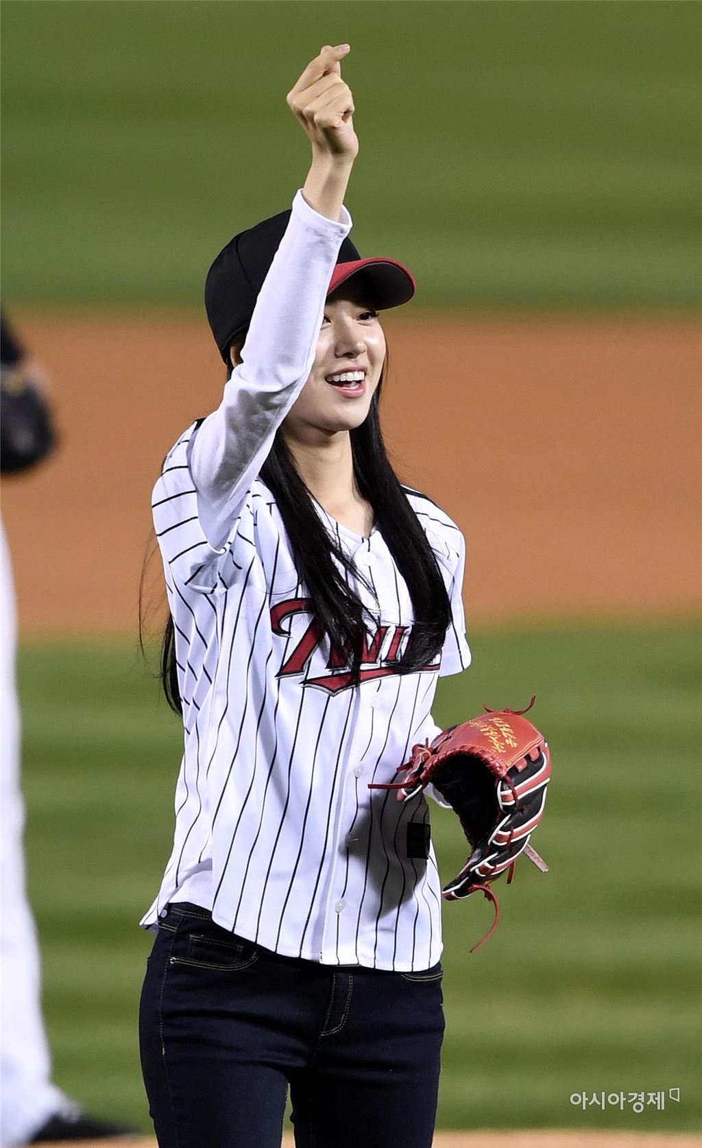 [아시아경제 김현민 기자]프로야구 NC와 LG의 2016 KBO 포스트시즌 플레이오프 3차전이 24일 잠실구장에서 열렸다. 경기에 앞서 배우 진세연이 시구하고 있다.김현민 기자 kimhyun81@asiae.co.kr<ⓒ세계를 보는 창 경제를 보는 눈, 아시아경제(www.asiae.co.kr) 무단전재 배포금지>