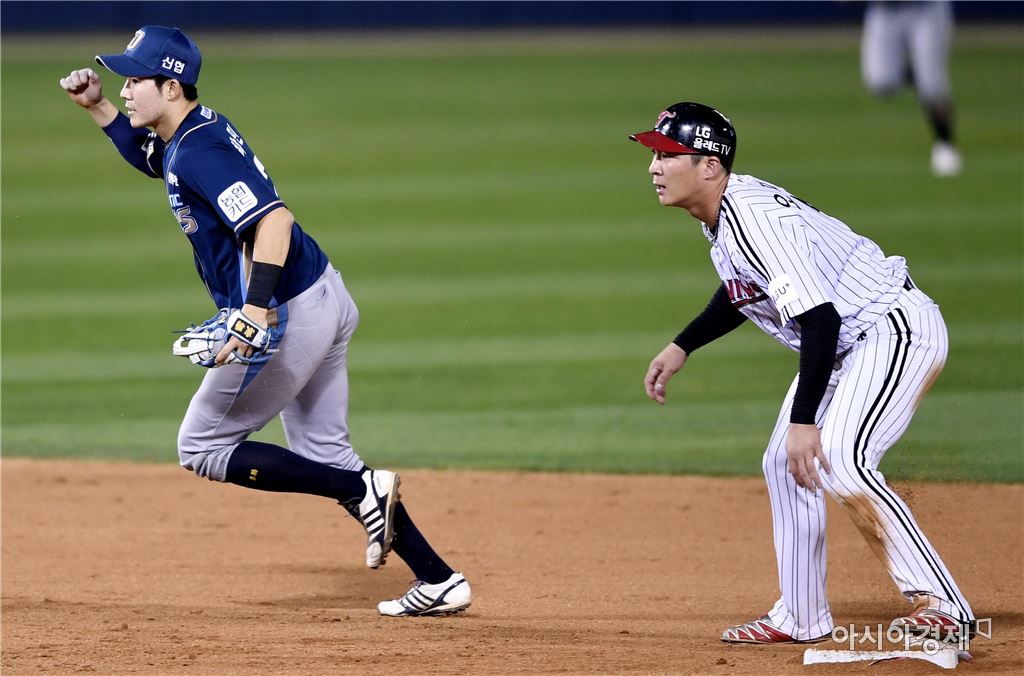 [아시아경제 김현민 기자]프로야구 NC와 LG의 2016 KBO 포스트시즌 플레이오프 3차전이 24일 잠실구장에서 열렸다. 6회말 2사 만루에서 NC 2루수 박민우가 LG 채은성의 유격수 땅볼 떄 1루주자 오지환을 포스아웃 시킨 뒤 주먹을 쥐며 기뻐하고 있다. 김현민 기자 kimhyun81@asiae.co.kr<ⓒ세계를 보는 창 경제를 보는 눈, 아시아경제(www.asiae.co.kr) 무단전재 배포금지>
