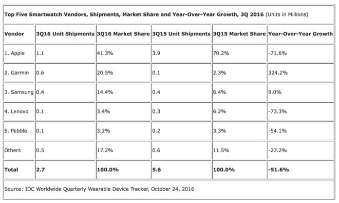 미국 GPS 장비 업체 가민(Garmin)은 전년 대비 324%가 성장, 60만대 판매량을 기록하면서 2위에 올랐다. 시장 점유율도 2.3%에서 20.5%로 급성장했다.'포러너 235'라는 아마추어 마라토너들에게 특화된 스마트워치로 흥행을 이끌었다. GPS 성능과 심박수 체크 기능을 기반으로 주파거리, 시간, 구간별 페이스 등 다양한 측정 기능을 갖췄다.삼성전자는 전년 대비 9% 성장한 40만대 판매고를 기록했다. 전체적으로 시장이 쪼그라들면서 점유율은 6.4%에서 14.4%로 올랐다.레노보, 페블은 각각 판매량이 73%, 54% 줄어든 10만대를 기록했다. 시장 점유율도 3.4%와 3.2%를 차지했다.4분기 스마트워치 시장 경쟁이 다시 뜨거워질 전망이다. 애플워치 시리즈2가 본격 판매에 들어가고, 삼성 기어S3도 다음 달 출시될 전망이다.기어S3