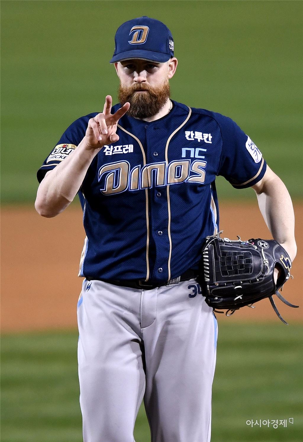 [아시아경제 김현민 기자]프로야구 NC와 LG의 2016 KBO 포스트시즌 플레이오프 4차전이 25일 잠실구장에서 열렸다. NC 선발투수 해커가 김태군 포수를 향해 손짓하고 있다.김현민 기자 kimhyun81@asiae.co.kr<ⓒ세계를 보는 창 경제를 보는 눈, 아시아경제(www.asiae.co.kr) 무단전재 배포금지>