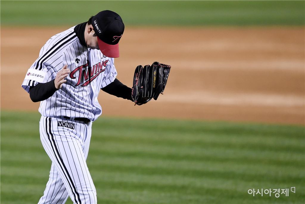 [아시아경제 김현민 기자]프로야구 NC와 LG의 2016 KBO 포스트시즌 플레이오프 4차전이 25일 잠실구장에서 열렸다. LG 선발투수 우규민이 1회초 수비를 삼자범퇴 무실점으로 막고 박수치며 기뻐하고 있다.김현민 기자 kimhyun81@asiae.co.kr<ⓒ세계를 보는 창 경제를 보는 눈, 아시아경제(www.asiae.co.kr) 무단전재 배포금지>