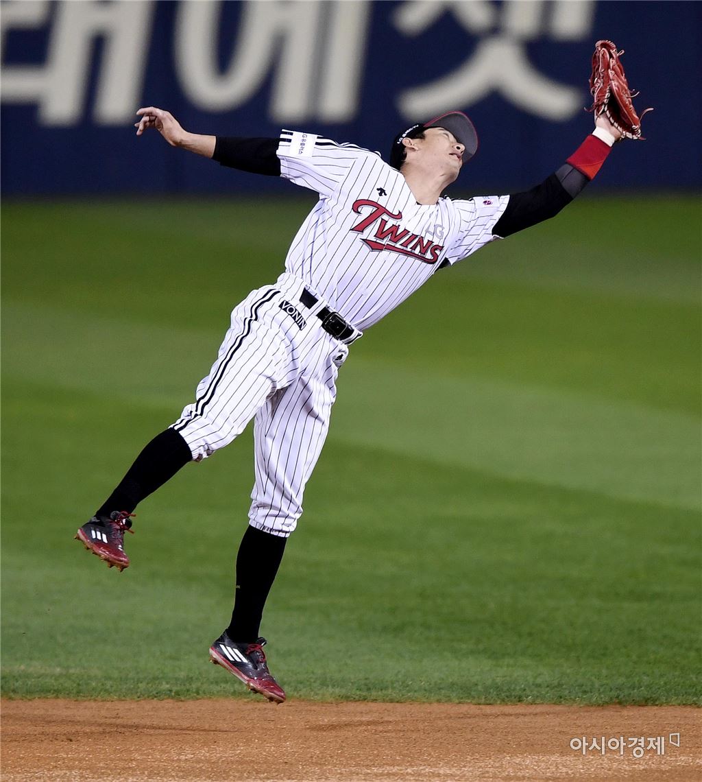 [아시아경제 김현민 기자]프로야구 NC와 LG의 2016 KBO 포스트시즌 플레이오프 4차전이 25일 잠실구장에서 열렸다. 1회초 NC 선두타자 박민우의 타구를 LG 2루수 손주인이 잡아내고 있다.김현민 기자 kimhyun81@asiae.co.kr<ⓒ세계를 보는 창 경제를 보는 눈, 아시아경제(www.asiae.co.kr) 무단전재 배포금지>