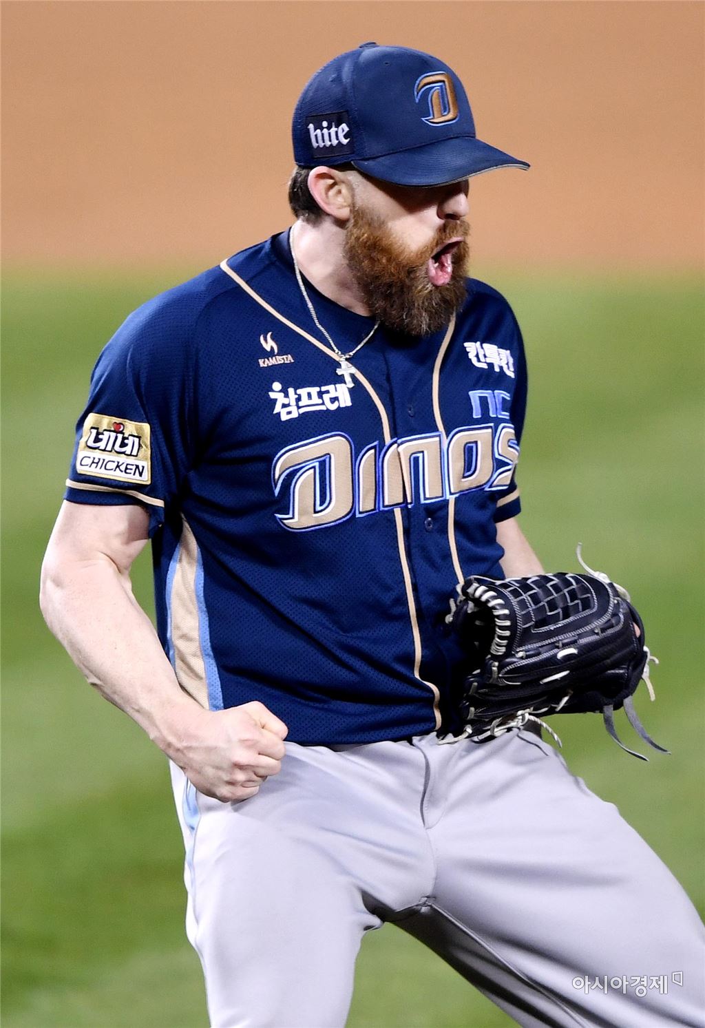 [아시아경제 김현민 기자]프로야구 NC와 LG의 2016 KBO 포스트시즌 플레이오프 4차전이 25일 잠실구장에서 열렸다. NC 선발투수 해커가 7회말 2사 1루에서 LG 이천웅을 2루수 땅볼로 처리한 뒤 포효하고 있다.김현민 기자 kimhyun81@asiae.co.kr<ⓒ세계를 보는 창 경제를 보는 눈, 아시아경제(www.asiae.co.kr) 무단전재 배포금지>
