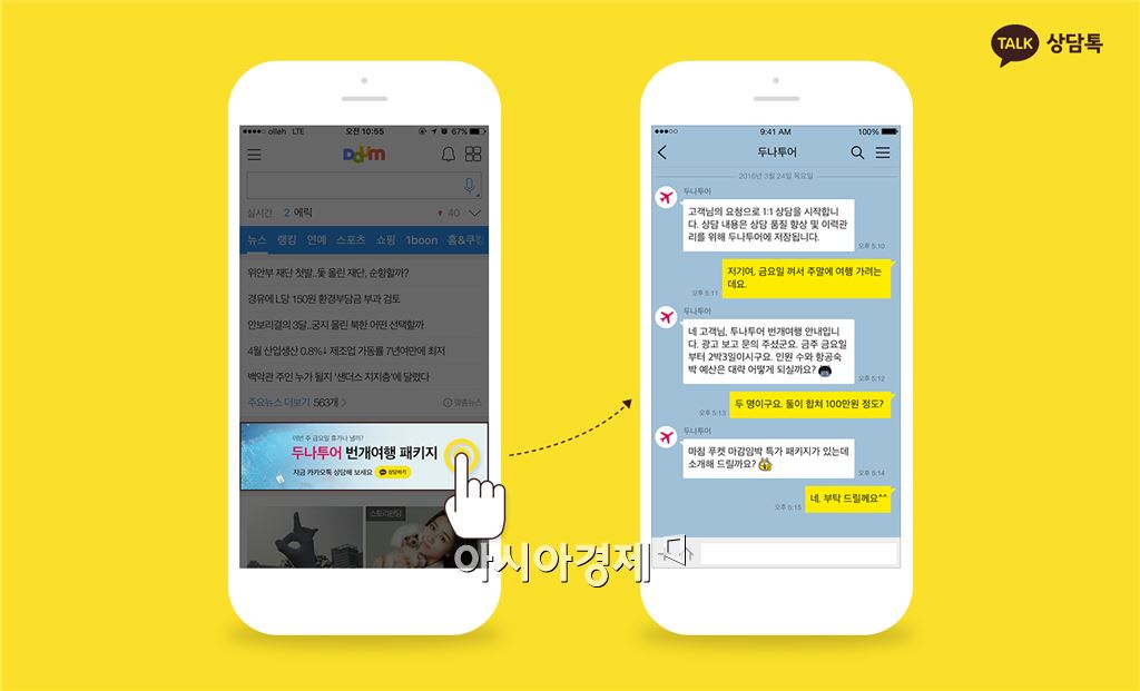 [아시아경제 한진주 기자] 카카오가 자사 고객과 기업이 1대1로 상담할 수 있는 기업용 상품 '카카오톡 상담톡'을 출시했다.상담톡은 기업의 CS센터 상담원이 고객과 카카오톡으로 1:1 대화를 나눌 수 있도록 연결해주는 채팅 상담 API 상품이다. 상담톡 API(서로 다른 회사의 서비스를 연결해주는 도구)를 자사 시스템과 연동하면 CS센터를 보유한 기업들도 자사 상담원들을 통해 모바일 상담을 제공할 수 있다. 상담톡을 활용하면 자사 모바일 앱, 홈페이지 등에 '카카오톡 상담' 버튼을 적용할 수 있다. 고객이 카카오톡에서 옐로아이디나 플러스친구를 추가하지 않아도 서비스 이용 중 카톡 상담 버튼을 눌러 바로 기업의 상담원과 연결될 수 있다.모바일에서 고객이 '카카오톡 상담' 버튼을 누르면 자동으로 카카오톡 앱으로 연동되며, PC에서는 카카오계정 로그인 또는 상담 채팅방 접근용 QR코드를 스캔하면 자신의 스마트폰에서 바로 상담원과 대화를 시작할 수 있다.전화, 이메일, 채팅 상담 등 기업에게 상담 솔루션을 제공하는 중소업체들도 카카오톡이라는 새로운 상담 플랫폼을 활용해 비즈니스 기회를 만들 수 있다. 카카오는 상담톡을 통해 소비자에게는 상담 편의를, 기업에게는 상담 응대의 효율성을 제공할 것으로 기대하고 있다. 소비자 입장에서는 상담원과 연결될 때까지 통화 상태를 유지해야하는 불편함이 사라진다.또한 카카오톡으로 사진, 영상 등의 멀티미디어 전송이 가능해 상담원과 더욱 원활한 대화가 가능하며, 대화방에 상담 이력이 남기 때문에 시간이 지나도 이전 상담 내용을 확인할 수 있다.기업의 경우 상담원이 동시에 여러개의 상담 대화창을 응대할 수 있어 상담센터를 더욱 효율적으로 운영할 수 있다. 또한 기존 음성 기반의 상담 녹취 내역을 텍스트로 저장하는데 필요한 인력과 비용을 절감할 수 있다.상담톡 이용을 원하는 기업은 상담톡 공식 딜러사와 계약을 통해 시스템 구축 및 서비스를 운영할 수 있다. 10월 초 상담톡 페이지 오픈 이후 상담톡 도입 문의가 이어지고 있으며 연내 라이나생명, 배달의민족, KG로지스 등이 상담톡을 적용할 계획이다.감철웅 카카오 메시지사업파트장은 "카카오톡이라는 상담 플랫폼이 열린만큼, 모바일을 통한 상담 관련 시장이 확대되는 효과가 있을것으로 기대한다"며 "알림톡, 친구톡에 이어 상담톡 서비스 오픈을 통해 기업과 소비자의 니즈가 카카오톡 안에서 완결될 수 있는 편리한 모바일 소통 환경을 지속적으로 만들어 나갈 것"이라고 밀했다. 한진주 기자 truepearl@asiae.co.kr<ⓒ세계를 보는 창 경제를 보는 눈, 아시아경제(www.asiae.co.kr) 무단전재 배포금지>