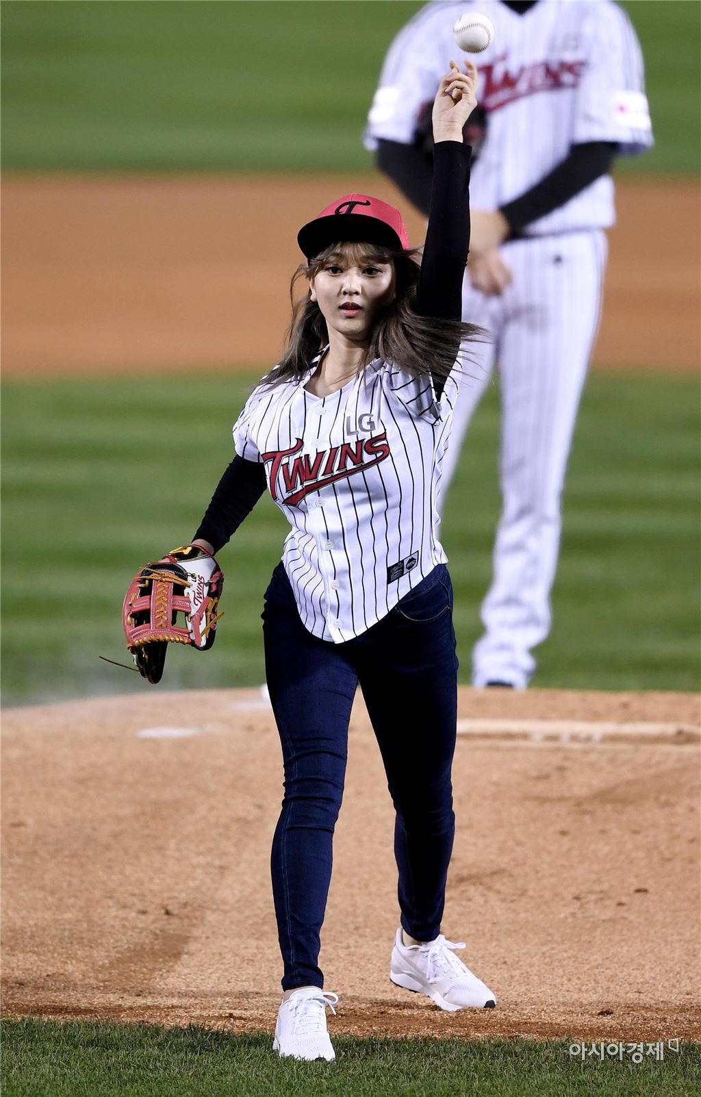 [아시아경제 김현민 기자]프로야구 NC와 LG의 2016 KBO 포스트시즌 플레이오프 4차전이 25일 잠실구장에서 열렸다. 경기에 앞서 걸그룹 트와이스의 지효가 시구하고 있다.김현민 기자 kimhyun81@asiae.co.kr<ⓒ세계를 보는 창 경제를 보는 눈, 아시아경제(www.asiae.co.kr) 무단전재 배포금지>