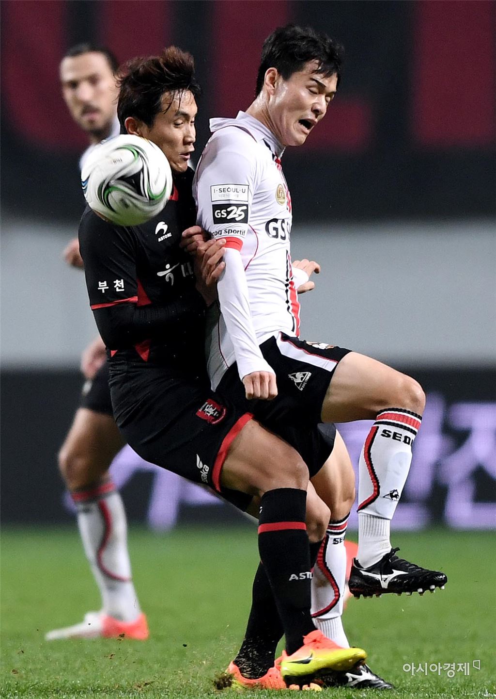 [아시아경제 김현민 기자] 프로축구 FC서울과 부천FC의 2016 FA컵 4강전이 26일 서울월드컵경기장에서 열렸다. 서울 주세종이 부천 문기한과 공을 다투고 있다. 김현민 기자 kimhyun81@asiae.co.kr<ⓒ세계를 보는 창 경제를 보는 눈, 아시아경제(www.asiae.co.kr) 무단전재 배포금지>