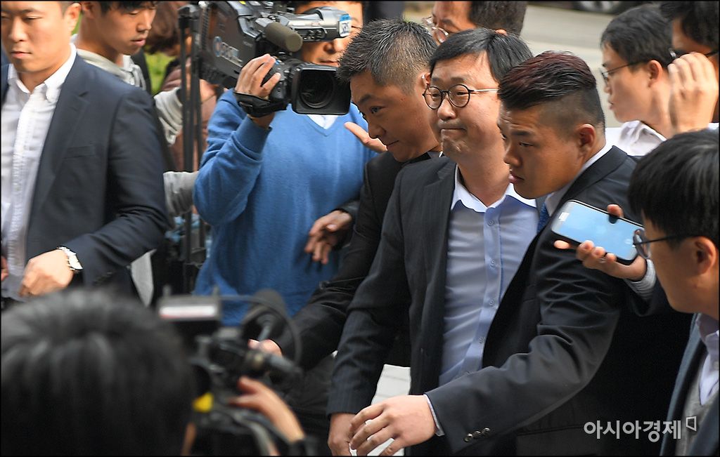 [아시아경제 윤동주 기자] 조인근 전 청와대 연설기록비서관이 28일 서울 여의도 한국증권금융본사 앞에서 '박근혜 대통령 연설문 유출' 파문과 관련해 입장을 밝힌 후 증권금융 관계자들의 보호를 받으며 이동하고 있다.윤동주 기자 doso7@asiae.co.kr<ⓒ세계를 보는 창 경제를 보는 눈, 아시아경제(www.asiae.co.kr) 무단전재 배포금지>