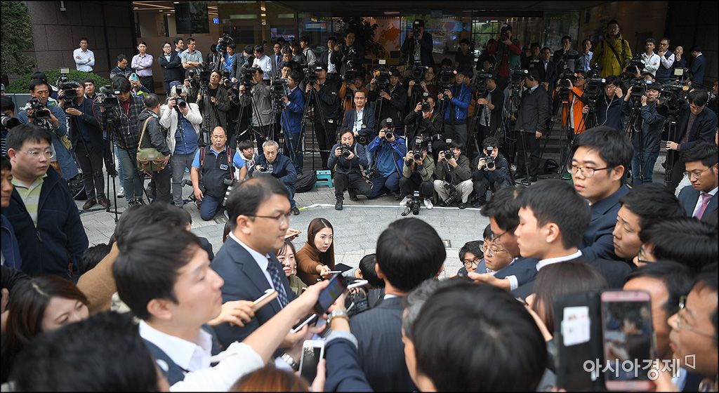 [아시아경제 윤동주 기자] 조인근 전 청와대 연설기록비서관이 28일 서울 여의도 한국증권금융본사 앞에서 '박근혜 대통령 연설문 유출' 파문과 관련해 입장을 밝히고 있다.윤동주 기자 doso7@asiae.co.kr<ⓒ세계를 보는 창 경제를 보는 눈, 아시아경제(www.asiae.co.kr) 무단전재 배포금지>