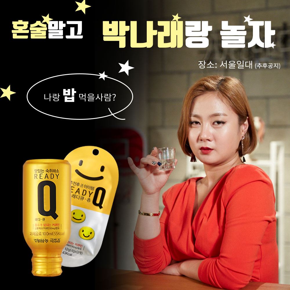 [아시아경제 이주현 기자]한독의 맛있는 숙취해소제 ‘레디큐’가 오는 11일에 진행하는 ‘혼술 말고 박나래랑 놀자’ 행사의 참여자를 모집한다고 3일 밝혔다.‘혼술 말고 박나래랑 놀자’는 평소 혼자 술을 즐기는 혼술 남녀 20명을 초대해 레디큐 광고 모델인 박나래와 함께 즐거운 술자리를 가질 수 있는 행사다.이번 행사는 박나래가 자신의 집을 바(Bar)처럼 꾸미고 지인들을 초청해 유명해진 ‘나래바’ 분위기로 연출된 장소에서 진행된다. 참가자들의 혼술 경험담을 공유하는 ‘나만의 혼술 사연 토크’, 박나래의 폭탄주 제조법과 혼자서도 재미있게 술 마시는 방법을 알려주는 ‘혼술 강의’ 등 박나래가 직접 진행하는 다양한 행사가 준비돼 있다.참여를 원하는 사람은 6일까지 레디큐 페이스북에 나만의 혼술 사연을 댓글로 남기면 된다. 파티 참가자 전원에게는 레디큐 드링크와 레디큐-츄 각각 1박스를 증정하며 휴대용 음주측정기, 백화점 상품권, 영화 예매권 등 푸짐한 경품도 제공한다.‘레디큐’는 2014년 출시 이후 열대 과일과 망고 맛으로 숙취해소제 시장에서 돌풍을 일으킨 제품이다. 헛개’와 울금(강황)에서 추출한 커큐민의 흡수율을 개선한 '테라큐민'을 함유하고 있어 커큐민의 흡수가 잘되고 숙취해소에 효과적이다. ‘레디큐’는 음료 형태의 ‘레디큐 드링크’와 젤리 형태의 ‘레디큐-츄’ 2종이 있다.한편, 레디큐는 누적 판매량 600만병 돌파를 기념해 해외 여행 상품권과 백화점 상품권 등 총 2000만원의 경품을 제공하는 ‘박나래가 확 쏜다’ 이벤트를 11월 말까지 레디큐 페이스북에서 진행 중이다.이주현 기자 jhjh13@asiae.co.kr<ⓒ세계를 보는 창 경제를 보는 눈, 아시아경제(www.asiae.co.kr) 무단전재 배포금지>