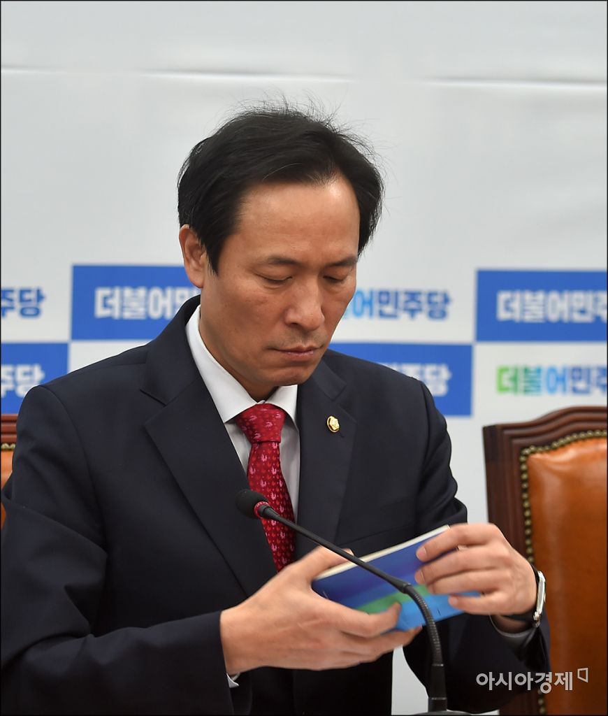 [아시아경제 윤동주 기자] 우상호 더불어민주당 원내대표가 3일 국회에서 열린 정책조정회의에 참석, 발언을 하기 전 수첩을 보고 있다.윤동주 기자 doso7@asiae.co.kr<ⓒ세계를 보는 창 경제를 보는 눈, 아시아경제(www.asiae.co.kr) 무단전재 배포금지>