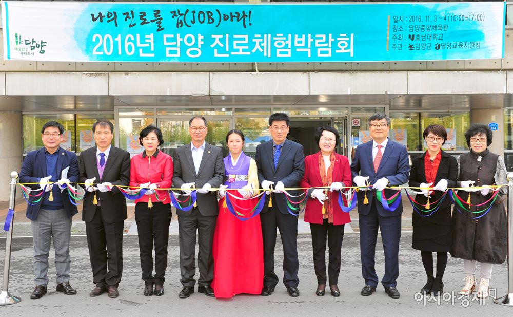 "초중고생 3,000명 참여, 2일간 진로상담 탐색·설계""학과·특성화·프라임사업단 등 전공별 테마 체험제공 "[아시아경제 노해섭 기자]담양군 청소년들에게 다양한 직업 세계를 보여주고 자신의 꿈과 재능을 찾을 수 있도록 돕는 '2016 담양진로체험박람회'가 11월 3일 담양종합체육관에서 개막됐다. 이날 개막식에는 홍성일 담양부군수와 이규현 담양군의회 부의장, 공영휴 담양교육지원청장, 박상철 호남대 부총장 등이 참석했다. '나의 진로를 잡(Job)아라'를 주제로 호남대학교(총장 서강석)와 담양군이 함께 개최한 이번 박람회에는 담양군 25개 초·중·고교 학생 3,000여 명과 학부모 300여 명 등이 참가해 2일간 다양한 진로직업체험과 진로진학상담을 통해 진로를 탐색하고 설계하는 기회를 갖는다.이번 박람회 참여 학생들은 호남대 학생상담센터(센터장 김미례)가 운영하는 '자기이해탐색관'에서 자아상태·인생태도 검사와 홀랜드학습방법검사, 다중지능검사 등을 통해 자신을 이해하고 이를 바탕으로 직업을 탐색했다. '상담관'에서는 담양지역 고등학교 진로지도 교사와 대학교수들로부터 직접 진로진학 상담을 받았다.
