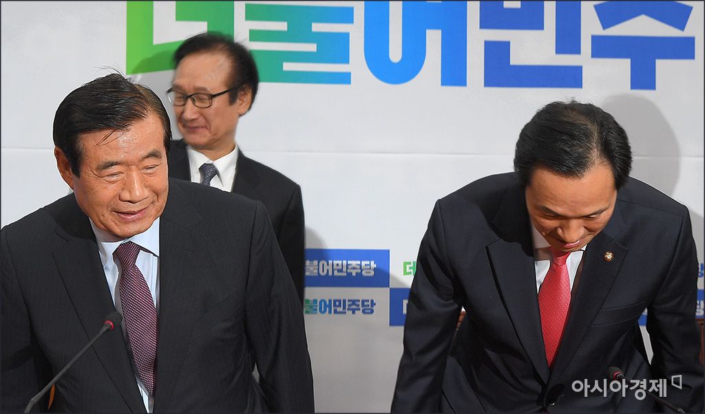 [아시아경제 윤동주 기자] 한광옥 대통령 비서실장이 4일 국회에서 우상호 더불어민주당 원내대표를 만나 인사를 나누고 있다.윤동주 기자 doso7@asiae.co.kr<ⓒ세계를 보는 창 경제를 보는 눈, 아시아경제(www.asiae.co.kr) 무단전재 배포금지>