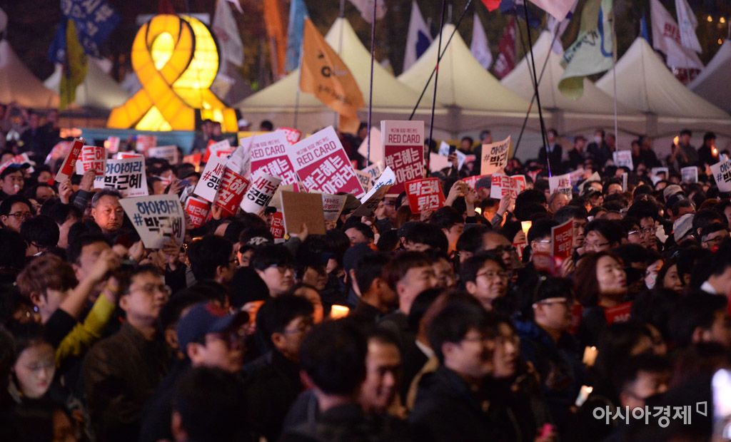 ▲ 5일 민중총궐기 투쟁본부 등 시민사회ㆍ노동단체들이 주관하는 '모이자! 분노하자! #내려와라 박근혜 2차 범국민행동' 문화제에는 주최측 추산 12만명(경찰 추산 4만명)이 집결한 것으로 추산된다.