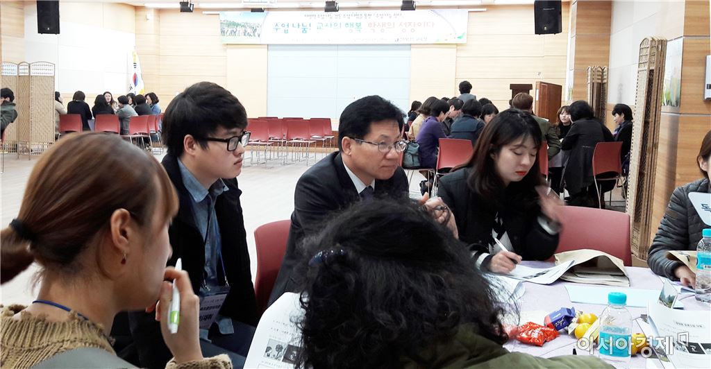 "‘팔아요, 사세요’수업 감동""자발적 수업 나눔 동아리 운영, 교실수업개선 우수사례 공유"[아시아경제 노해섭 기자]전남도교육청(교육감 장만채)은 지난 3~5일 보성군청소년수련원에서 도내 350여명의 교사들이 참여한 가운데 ‘수업 나눔 장터’를 개최했다. 이번 행사는 지난 7월 350여개의 수업 나눔 동아리의 전남 교사 수업 나눔 대장정 선언식에 이어 권역별 연수와 각 학교에서 시행한 수업 나눔의 우수사례를 공유하기 위해 마련됐다. 3일 수업선도교사의 날에서는 곽노현 전, 서울시교육감이 ‘민주시민교육의 방향’에 대한 강의에 이어 교실수업개선 선도학교를 운영한 화순오성초, 곡성중의 수업 나눔 사례, 내년 수업선도교사의 수업 나눔 역할에 대해 토의를 진행하는 순서로 진행됐다. 4일부터 실시된 수업 나눔의 날에는 정영진 전, 전남교육감이 ‘뇌기반교육 수업혁명’이라는 강의에서 뇌기능에 기반한 수업 전개로 학생 배움중심 수업을 강조했다. 수업 나눔 코너에서는 질문중심 하브루타, 거꾸로 수업, 배움의 공동체, 아이눈으로 수업보기, 독서토론, 수업의 기본 등을 주제로 수업 나눔을 가졌다. 또 우수학교 동아리 코너에서는 동아리 운영에 대한 고민과 우수사례를 나눴다. 특히 그동안 수업 나눔 대장정에 적극 참여한 현장지원단과 동아리 회원이 숲길을 걸으면서 고민을 나누고 격려하는 수업 나눔 쓰담쓰담을 운영했다. 도교육청은 올 한해 수업 나눔을 통해 수업 기법 위주의 수업협의회에서 탈피하고, 수업 공유, 성찰, 학생 배움 중심의 관점에서 수업 나눔을 진행해 교사의 호응을 얻었다. 또 교사 자발성에 근거한 수업 나눔 활동이 기반이 된 수업선도교사, 전남수업우수교사, 좋은수업실천제 등의 실시로 교사는 수업역량이 강화되고 학생은 미래핵심역량이 신장될 것으로 기대하고 있다. 수업 나눔 장터에 참석한 김민자 수석교사(화순만연초)는 “수업 나눔으로 교실수업개선을 위한 수석교사의 역할이 더욱 명확해졌다”며 “교사가 수업 전문가로 존중 받아 많은 위로를 받고 있다”고 말했다. 김천옥 정책기획관은 “자발성에 근거한 전남 교사 수업 나눔 대장정 사업은 전남의 교실수업개선의 큰 밑그림이다”며 “자발적으로 수업을 나누고 감동 수업을 더해 꿈을 키우는 교실 행복한 전남교육이 될 수 있도록 최선을 다 하겠다”고 말했다.노해섭 기자 nogary@<ⓒ세계를 보는 창 경제를 보는 눈, 아시아경제(www.asiae.co.kr) 무단전재 배포금지>