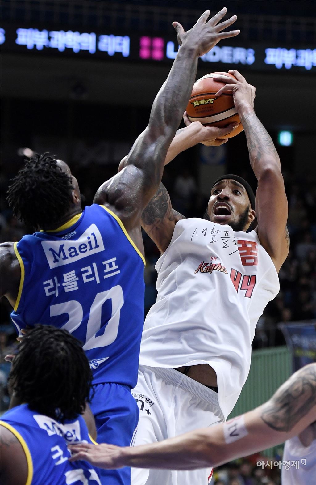 [아시아경제 김현민 기자]프로농구 서울 삼성과 서울 SK의 2016-2017 정규리그 경기가 6일 잠실실내체육관에서 열렸다. SK 심스가 상대 수비를 뚫고 공격하고 있다. 김현민 기자 kimhyun81@asiae.co.kr<ⓒ세계를 보는 창 경제를 보는 눈, 아시아경제(www.asiae.co.kr) 무단전재 배포금지>