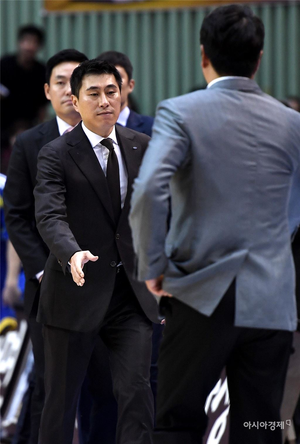 [아시아경제 김현민 기자]프로농구 서울 삼성과 서울 SK의 2016-2017 정규리그 경기가 6일 잠실실내체육관에서 열렸다. 삼성 이상민 감독이 88-84로 승리한 뒤 상대 문경은 감독과 악수하고 있다. 김현민 기자 kimhyun81@asiae.co.kr<ⓒ세계를 보는 창 경제를 보는 눈, 아시아경제(www.asiae.co.kr) 무단전재 배포금지>