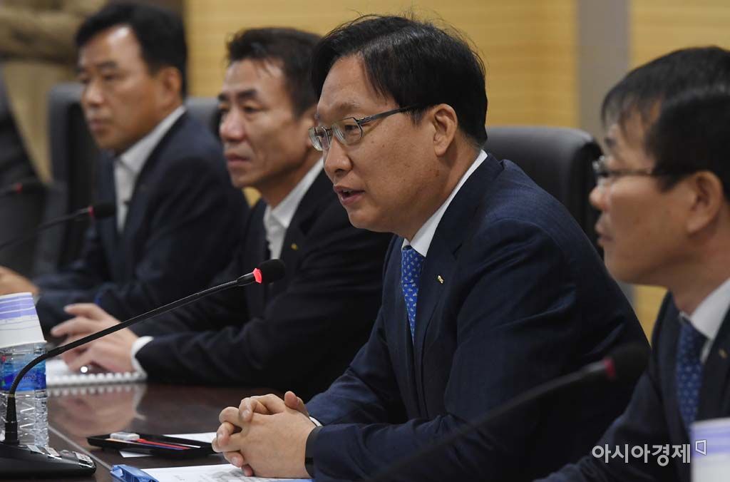 [아시아경제 백소아 기자] 홍순만 코레일 사장(왼쪽 세번째)이 7일 서울 중구 코레일 서울사옥에서 열린 성과연봉제 관련 장기파업 사태 해결을 위한 교섭에서 모두발언을 하고 있다.백소아 기자 sharp2046@asiae.co.kr<ⓒ세계를 보는 창 경제를 보는 눈, 아시아경제(www.asiae.co.kr) 무단전재 배포금지>