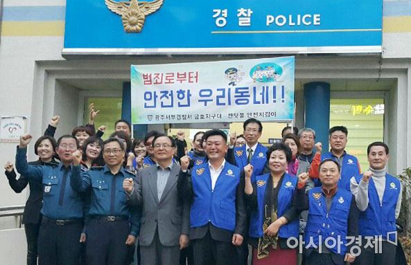 [아시아경제 노해섭 기자]광주시 서구 금호2동 반딧불 안전지킴이(회장 홍성철) 창단 발대식이 7일 오후 금호지구대에서 임우진 광주시 서구청장, 홍성철 반딧불 안전지킴이 회장, 김수곤 서부경찰서 생활안전과장, 김기수 금호2동장, 김범채 금호지구대장 등 30여명이 참석한 가운데 열렸다. 이날 홍성철 반딧불 안전지킴이 회장은 "서구 금호2동 자생단체 회원 및 주민들의 참여치안 활성화와 여성 청소년이 더욱 안심하고 생활 할 수 있는 지역을 만들기 위해 반딧불 안전지킴이 발대식을 가졌다"며 " 앞으로 반딧불 안전지킴이들은 지역 야간방범순찰과 학교폭력 예방캠페인, 기초질서 지키기 등 치안활동을 강화해 범죄로부터 안전한 동네를 만들기 위해 최선을 다하겠다"고 말했다.사진제공=금호2동사무소<ⓒ세계를 보는 창 경제를 보는 눈, 아시아경제(www.asiae.co.kr) 무단전재 배포금지>
