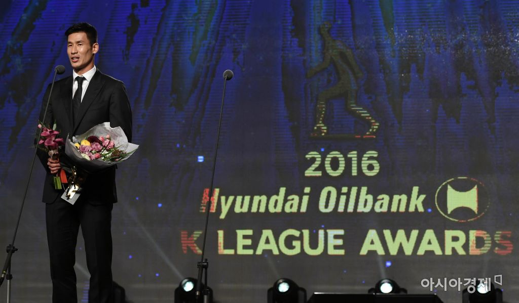 [아시아경제 김현민 기자] 2016 현대오일뱅크 K리그 시상식이 8일 서울 홍은동 그랜드힐튼호텔에서 열렸다. 광주 정조국이 최우수선수상을 수상하고 있다. 김현민 기자 kimhyun81@asiae.co.kr<ⓒ세계를 보는 창 경제를 보는 눈, 아시아경제(www.asiae.co.kr) 무단전재 배포금지>
