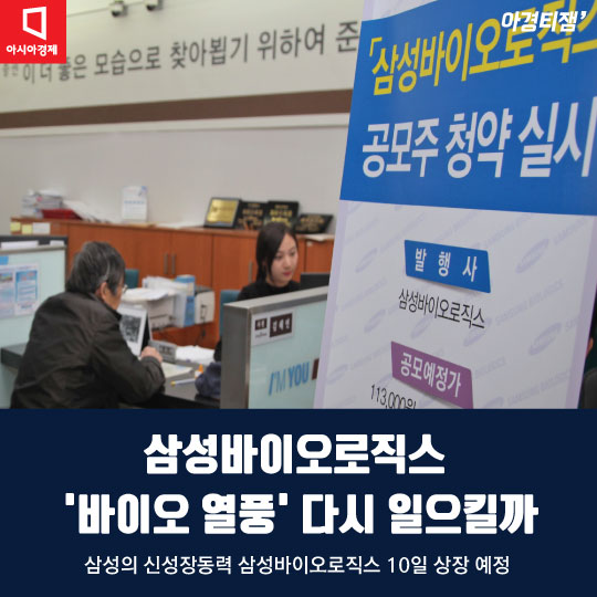 삼성의 차세대 먹거리를 책임질 삼성바이오로직스의 증시 상장이 하루 앞으로 다가왔습니다. 삼성바이오로직스의 상장을 앞두고 증시에 바이오 열풍이 다시 살아날 수 있을 지 관심이 커지고 있습니다. 삼성바이오로직스는 2011년 4월 설립된 국내 최대 규모 바이오의약품 위탁생산(CMO) 업체입니다. 삼성그룹 핵심 계열사인 삼성전자와 삼성물산이 지분을 대부분 보유하고 있습니다. 지난 2일과 3일 진행된 삼성바이오로직스 일반 청약에서는 배정물량 약 330만주에 대해 1억4998만주가 청약돼 경쟁률 45대1을 기록했습니다. 청약건수는 3만5700건, 청약증거금은 10조1988억원을 기록했습니다. 청약증거금이 10조원이나 몰리고 경쟁률도 높았지만 사실 이는 기대치보다는 못한 수치입니다. 지난달 26과 27일에 실시한 기관투자자 수요예측에서는 경쟁률이 295대1이었기 때문입니다. 2014년 기업공개 시장에서 최대 규모였던 제일모직의 일반 청약 경쟁률이 194대1이었던 점과 비교해봐도 이번 청약 열기는 상대적으로 미지근한 셈입니다. 일반투자자의 청약경쟁이 심하지 않았던 것은 몇가지가 이유가 있습니다. 우선 높게 책정된 공모가가 일반 투자자에게 부담으로 작용했다는 분석이 나오고 있습니다. 삼성바이오로직스의 공모가는 13만6000원이 책정돼 청약 희망가 범위인 11만3000원에서 13만6000원의 최상단에서 책정됐습니다. 청약 희망가가 높게 책정되면서 상장 이후 주가 하락을 염두에 둔 투자자들이 청약경쟁에서 발을 뺀 것입니다. 최근 한미약품 사태로 인해 국내 증시에서 바이오주들이 거품논란을 겪고 있었다는 점도 부담이었던 것 같습니다. 한미약품은 일부 기술 수출이 실패로 돌아갈 수 있다는 가능성이 제기되면서 주가 하락을 겪었습니다. 그럼에도 국내 바이오 업계에서는 삼성바이오로직스에 거는 기대가 큽니다. 삼성그룹이 바이오사업을 차세대 성장동력으로 삼고 적극적으로 육성하겠다는 의지를 밝혀왔기 때문입니다. 바이오 산업의 잠재력을 믿는 투자자라면 삼성바이오로직스를 눈여겨볼 필요가 있을 것 같습니다. 이창환 기자 goldfish@asiae.co.kr이경희 디자이너 modakid@asiae.co.kr<ⓒ세계를 보는 창 경제를 보는 눈, 아시아경제(www.asiae.co.kr) 무단전재 배포금지>
