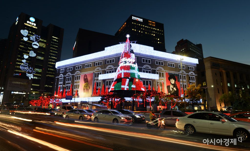 [아시아경제 문호남 인턴기자] 9일 서울 중구 신세계백화점 본점에서 크리스마스를 앞두고 설치된 20m 높이의 대형트리가 빛을 밝히고 있다. 문호남 인턴기자 munonam@asiae.co.kr<ⓒ세계를 보는 창 경제를 보는 눈, 아시아경제(www.asiae.co.kr) 무단전재 배포금지>