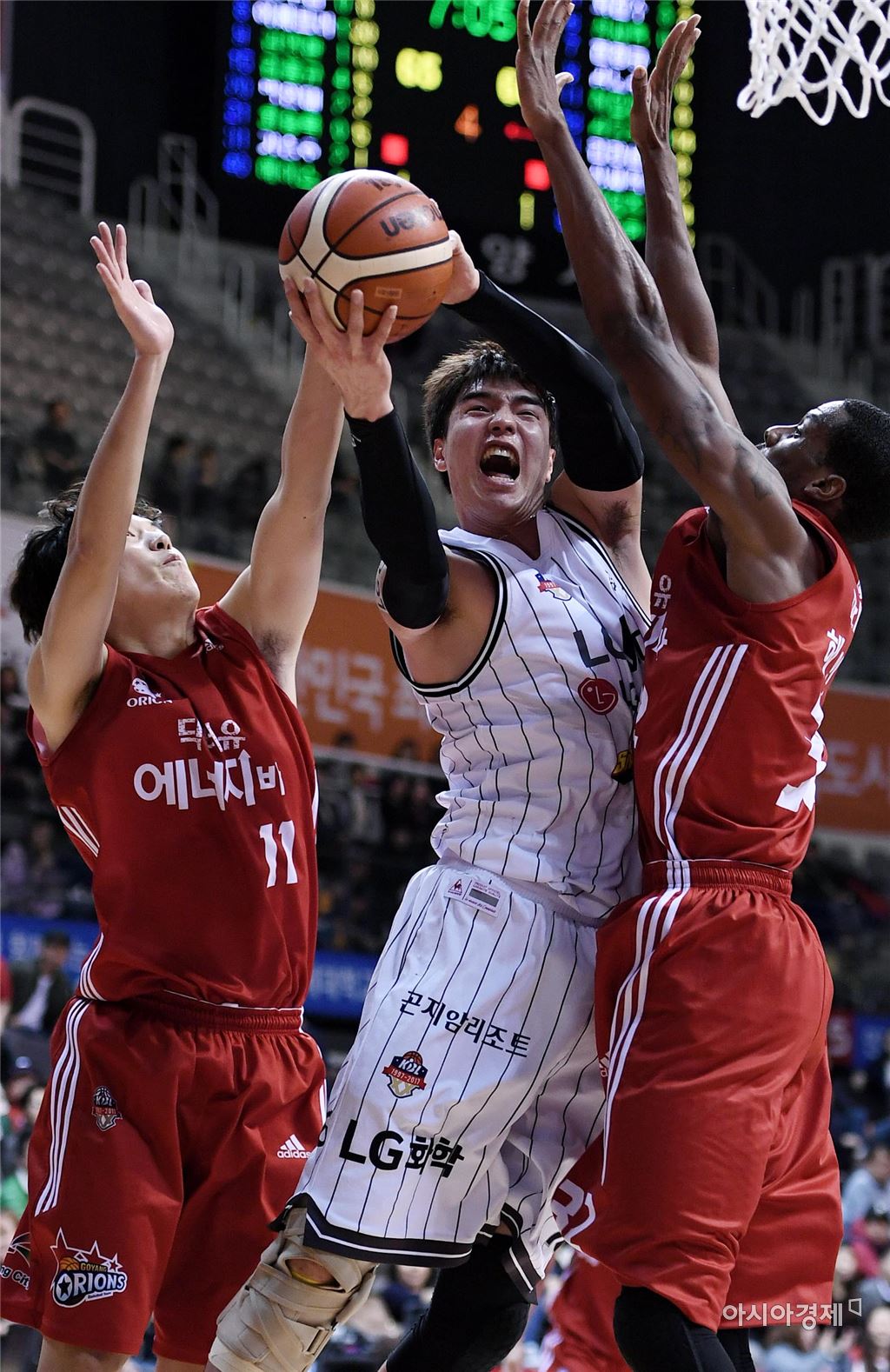 [고양=아시아경제 김현민 기자]프로농구 고양 오리온과 창원 LG의 2016-2017 정규리그 경기가 9일 고양체육관에서 열렸다. LG 김종규가 상대 수비를 뚫고 공격하고 있다. 김현민 기자 kimhyun81@asiae.co.kr<ⓒ세계를 보는 창 경제를 보는 눈, 아시아경제(www.asiae.co.kr) 무단전재 배포금지>