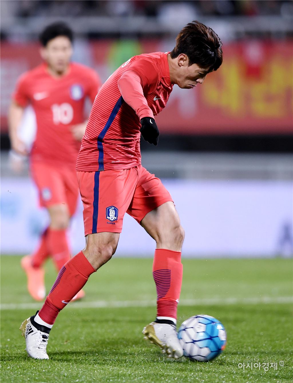 [천안=아시아경제 김현민 기자]울리 슈틸리케 감독이 이끄는 축구 국가대표팀이 11일 천안종합운동장에서 캐나다와 평가전을 했다. 김보경이 전반 선제골을 넣고 있다. 김현민 기자 kimhyun81@asiae.co.kr<ⓒ세계를 보는 창 경제를 보는 눈, 아시아경제(www.asiae.co.kr) 무단전재 배포금지>