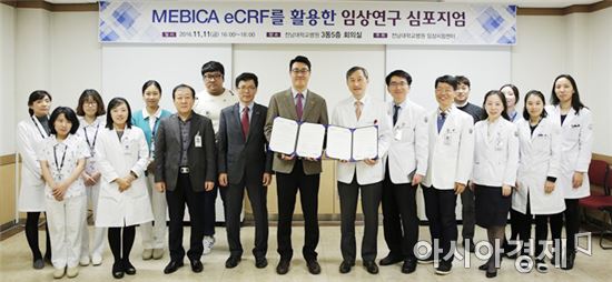 "임상시험 IT솔루션 공급 및 기술 등 협력키로""국내 의료발전 위한 모범적인 산학협력 기대"[아시아경제 노해섭 기자]전남대학교병원 임상시험센터(센터장 이신석)가 최근 (주)메빅슨(대표이사 임동석)과 상호협력을 위한 MOU를 체결했다.전남대병원은 11일 병원 3동 회의실에서 이신석 센터장과 임동석 대표이사를 비롯한 양 기관 관계자 20여명이 참석한 가운데 협약식을 가졌다.이날 양 기관은 임상시험 IT솔루션 공급 및 기술교류에 적극 협력해 전자 임상시험 데이터 관리 시스템(eClinical Trial Solution)을 구축키로 다짐했다.이에 따라 양 기관은 구체적으로 ▲메빅슨의 임상시험 자료 구축 및 자문 ▲임상시험 정보화 시스템 협력 ▲임상시험 데이터 관리 협력 ▲목적 달성을 위한 상호협력 업무 등을 추진해 나갈 방침이다.㈜메빅슨은 (재)서울의과학연구소/SCL, 바이오코아(주), (의)하나로의료재단 등 전문헬스케어기업을 보유한 헬스케어-생명공학 IT 전문기업이다.이날 이신석 센터장은 “이번 협약을 통해 임상시험 분야의 체계적인 데이터 관리시스템을 구축함으로써 기초연구 및 임상연구에 활력을 불어넣을 것으로 기대된다”고 밝혔다.한편 전남대병원 임상시험센터는 이날 협약식을 갖기 전 메빅슨 데이터 관리에 대한 심포지엄을 개최했다.이날 심포지엄에서는 ‘임상연구에서 eCRF의 중요성’(울산대학교병원 노욱환 임상조교수), ‘임상시험의 전반적인 이해’(네오뉴트라 박상옥 전무), ‘임상연구 시스템의 전자테이터 관리방안 및 규제대응’(메빅슨 이종선 부사장) 등에 대한 강의와 토론이 펼쳐졌다.노해섭 기자 nogary@<ⓒ세계를 보는 창 경제를 보는 눈, 아시아경제(www.asiae.co.kr) 무단전재 배포금지>