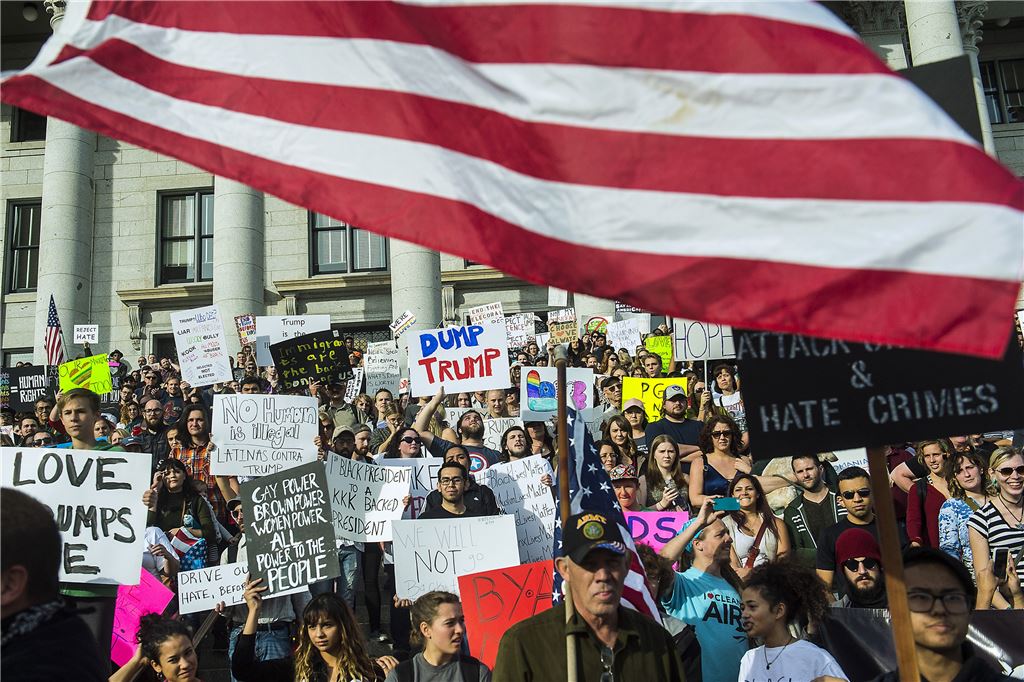[아시아경제 조목인 기자]미국 유타주 솔트레이크시티에서 12일(현지시간) 트럼프 반대 구호를 손에든 시위대들이 거리 행진을 하고 있다. 한 참가자는 '트럼프를 버려라(Dump Trump)'라는 문구를 손에 들고 있다. 미국 전역에서 4일째 도널드 트럼프 대통령 당선인에 반대하는 시위가 벌어지고 있다.(사진=AP연합뉴스)조목인 기자 cmi0724@asiae.co.kr<ⓒ세계를 보는 창 경제를 보는 눈, 아시아경제(www.asiae.co.kr) 무단전재 배포금지>