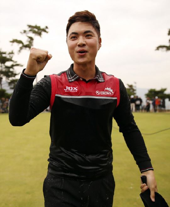 이형준이 투어챔피언십 우승이 확정되는 순간 환호하고 있다. 사진=KGT
