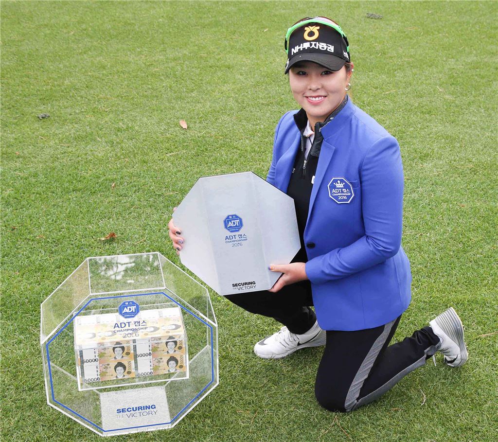 [아시아경제 노우래 기자] '버디퀸' 조윤지(25ㆍNH투자증권)의 화려한 피날레다.13일 경기도 이천 사우스스프링스골프장(파72ㆍ6505야드)에서 끝난 한국여자프로골프(KLPGA)투어 2016시즌 최종전 ADT캡스챔피언십(총상금 5억원) 최종 3라운드에서 4언더파를 보태 1타 차 우승(11언더파 205타)을 일궈냈다. 시즌 첫 승이자 지난해 7월 BMW레이디스 이후 1년 4개월 만에 통산 3승째다. 우승상금 1억원을 보태 4억원(4억3000만원) 고지를 돌파했다.버디 6개와 보기 2개를 묶었고, 특히 막판 위기관리능력이 빛을 발했다. 1타 차 선두를 달리던 15번홀(파5)에서 티 샷이 해저드로 날아가는 위기 상황에서 '천금 같은 파'를 지켰고, 16번홀(파5) 버디와 17번홀(파3)의 '3퍼트 보기'를 맞바꾼 마지막 18번홀(파4)에서는 티 샷이 페어웨이 벙커에 빠졌지만 '온 그린'에 성공한 뒤 2퍼트 파를 집어넣어 기어코 우승컵을 품에 안았다. 조윤지가 바로 지난해 BMW레이디스 최종일 9언더파의 코스레코드로 '4억260만원의 잿팟'을 터뜨린 선수다. 사우스스프링스는 더욱이 지난해 5월 E1채리티오픈 당시 1번홀부터 8연속버디를 잡아내 KLPGA투어 최다 연속버디 기록을 작성한 약속의 땅'이다. 조윤지 역시 "좋은 추억이 있는 곳이라 자신감이 생겼다"며 "시즌 첫 승이 늦었지만 유종의 미를 거둬 기쁘다"고 활짝 웃었다.상금랭킹 59위로 시드 유지가 불안했던 이다연(19)은 이민영(24ㆍ한화)과 함께 공동 2위(10언더파 206타), 60위 김보아(21ㆍ볼빅)는 공동 10위(5언더파 211타)로 선전해 여유있게 1부 투어카드를 확보했다. 이정은6(20)는 5언더파를 몰아쳐 공동 51위(2오버파 218타)로 순위를 끌어 올려 신인왕에 등극했다. '3승 챔프' 고진영(21)은 공동 17위(4언더파 212타)로 시즌을 마쳤다.노우래 기자 golfman@asiae.co.kr<ⓒ세계를 보는 창 경제를 보는 눈, 아시아경제(www.asiae.co.kr) 무단전재 배포금지>
