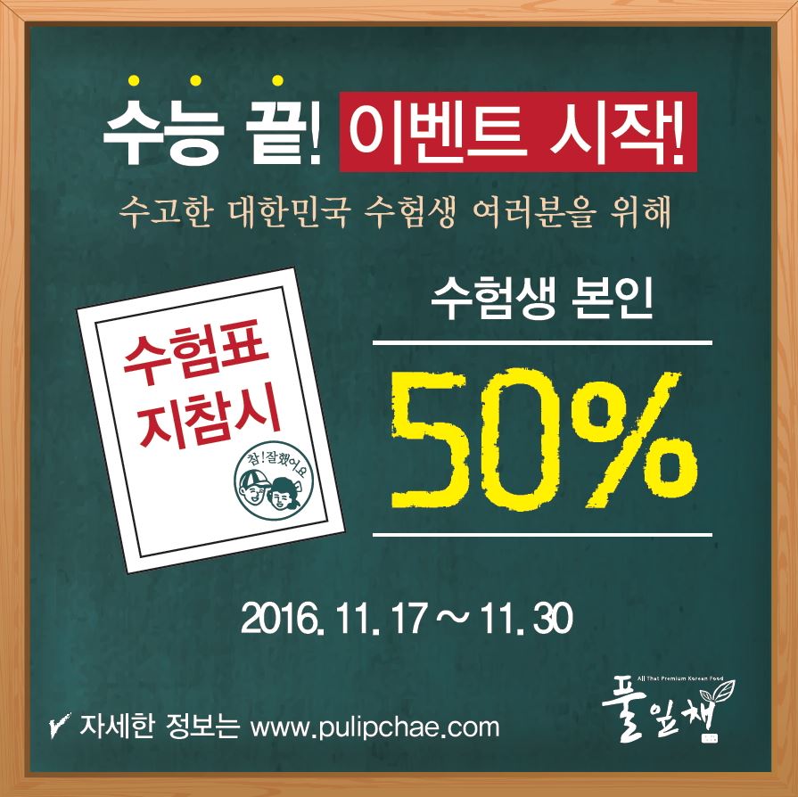 [아시아경제 오주연 기자]한식뷔페 브랜드 풀잎채가 수험생들을 격려하기 위해 수능 당일부터 이달 30일까지 대폭 할인 이벤트를 진행한다고 14일 밝혔다. 이번 이벤트는 풀잎채 매장 방문 및 계산 시 수험생 표를 제시하면 50% 즉시 할인해주는 행사로 전국 매장에서 진행될 예정이다.(김해점, 양산점 등 일부 매장 제외) 최근 풀잎채는 새로운 브랜드인 이색 월드쌈 전문점 ‘올위드쌈’을 론칭하면서 한식 브랜드 확장에 나서고 있다. 한식은 물론 세계 각국의 다양한 쌈 요리를 샐러드바 형태로 한 곳에서 즐길 수 있는 것이 특징이다.오주연 기자 moon170@asiae.co.kr<ⓒ세계를 보는 창 경제를 보는 눈, 아시아경제(www.asiae.co.kr) 무단전재 배포금지>