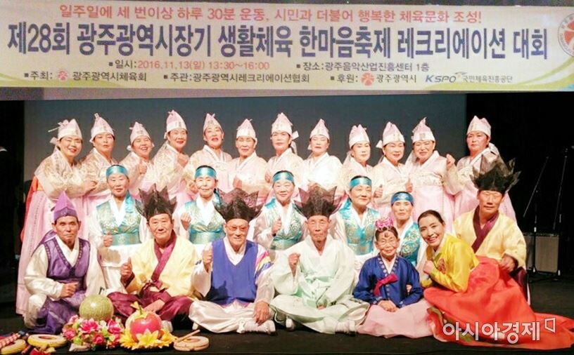 "광주광역시장기 생활체육 한마음축제에서 멋진 공연 선보여" [아시아경제 노해섭 기자]“한우리예술단이 또 한번 곡성의 저력을 보여줬다!”곡성군 옥과면(면장 서충규)은 지난 13일 광주광역시장기 생활체육 한마음축제 레크리에이션 대회에서 ‘한우리예술단’이 영예의 대상을 수상했다고 15일 밝혔다.탄탄한 실력을 갖춘 예술단체로 이미 유명세를 떨치고 있는 ‘한우리예술단’은 이번 경연대회에서도 또 다시 심사위원들과 관람객들의 눈과 귀를 사로잡을 만한 단결된 모습의 멋진 공연을 선보였다고 전했다.지난 해 한순임 강사가 ‘한우리예술단 지도자 장관상’을 수상한데 이어 이번 ‘한우리예술단’의 대상 수상은 곡성을 전국에 알리는 큰 역할을 한 것으로 보인다.전승길 한우리예술단장은 “우리 한우리예술단은 문화예술분야에서 국내뿐만 아니라 해외에서도 우리지역을 알리는 홍보 대사로서의 역할을 수행해 나갈 계획이다”고 소감을 밝혔다. 한편, 옥과면 한우리예술팀은 2008년도에 ‘3세부터 100세까지 함께해서 행복한 세상을 만들어 봐요’라는 슬로건 아래 평균연령 72세로 구성된 지역 예술단체로서, 9년 동안 110여 회의 국·내외 공연활동을 펼치면서 80여 회를 수상하는 등 문화예술분야에서 독보적인 실력을 뽐내고 있다.노해섭 기자 nogary@<ⓒ세계를 보는 창 경제를 보는 눈, 아시아경제(www.asiae.co.kr) 무단전재 배포금지>
