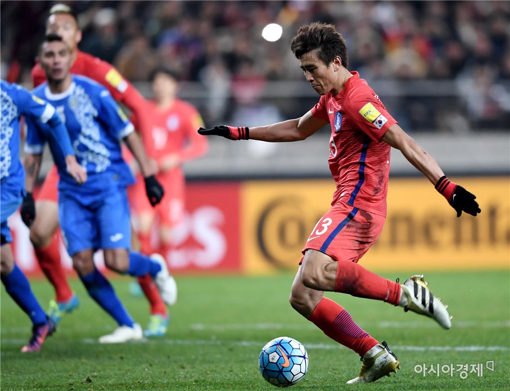 [아시아경제 김현민 기자]울리 슈틸리케 감독이 이끄는 축구대표팀과 우즈베키스탄의 2016 러시아 월드컵 아시아지역 최종예선 A조 5차전이 15일 서울월드컵경기장에서 열렸다. 구자철이 후반 2-1 역전골을 넣고 있다. 김현민 기자 kimhyun81@asiae.co.kr<ⓒ세계를 보는 창 경제를 보는 눈, 아시아경제(www.asiae.co.kr) 무단전재 배포금지>