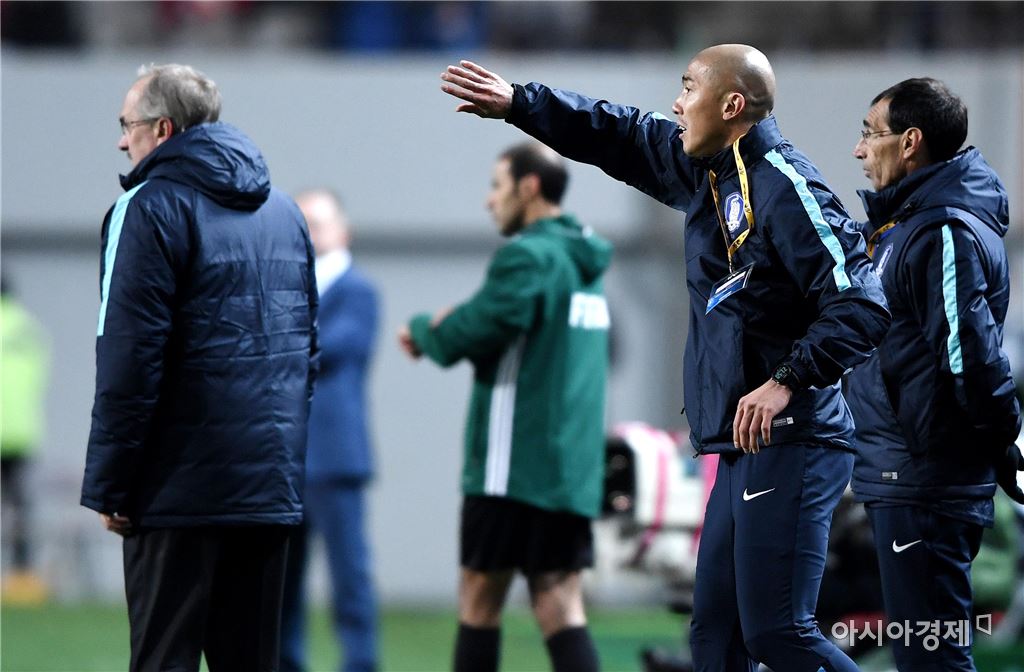 [아시아경제 김현민 기자]울리 슈틸리케 감독이 이끄는 축구대표팀과 우즈베키스탄의 2016 러시아 월드컵 아시아지역 최종예선 A조 5차전이 15일 서울월드컵경기장에서 열렸다. 차두리 전력분석관이 선수들을 독려하고 있다. 김현민 기자 kimhyun81@asiae.co.kr<ⓒ세계를 보는 창 경제를 보는 눈, 아시아경제(www.asiae.co.kr) 무단전재 배포금지>